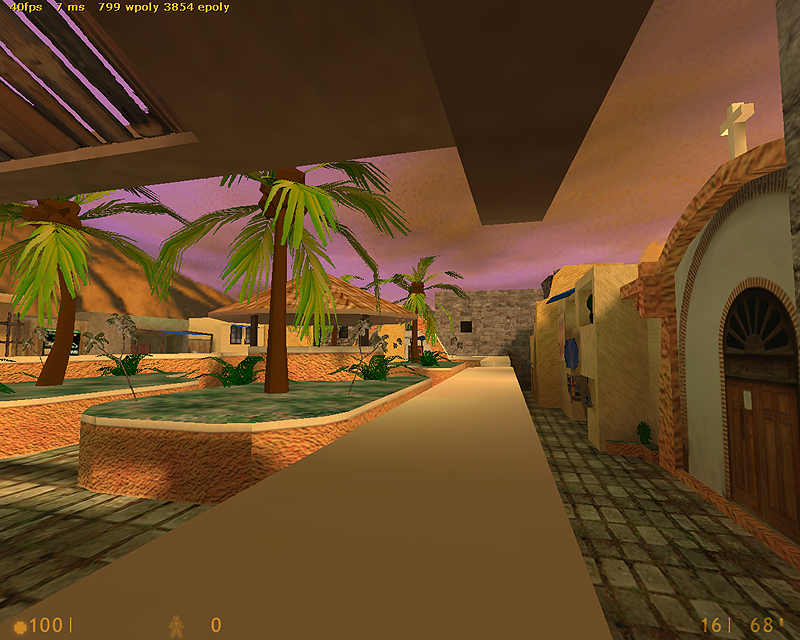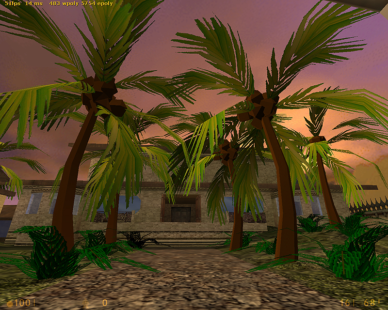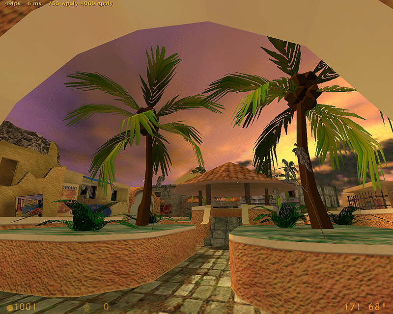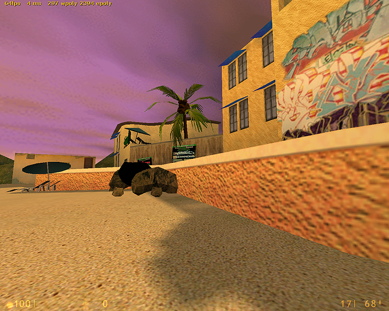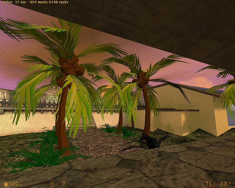 This was a map I made for Firearms|Halflife and also had planned to port to Jungle Mist. Looking back now it’s a very rough approximation of the central area. I couldn’t model the roads out of the area because of the FAGoldSource limitations of 800 polygons in the scene at any given time.