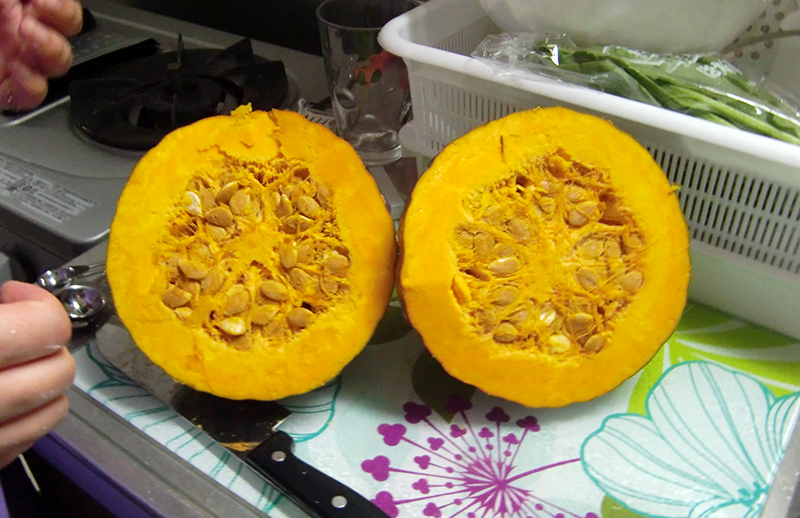 First is a Japanese squash called a Kobocha. It’s quite similar to a squash. This one was quite tasty. I’d say it was softer and more flavorful than yourtypicalsquash.