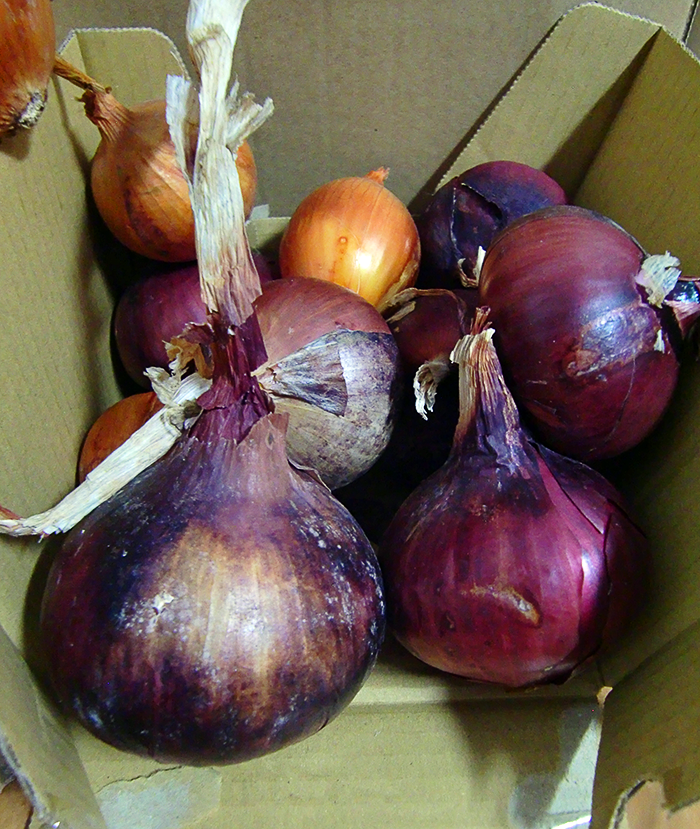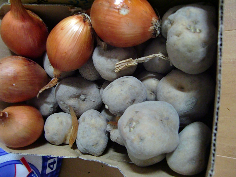 He then gave me a hue bag of red and white onions with a assortment of potatoes.