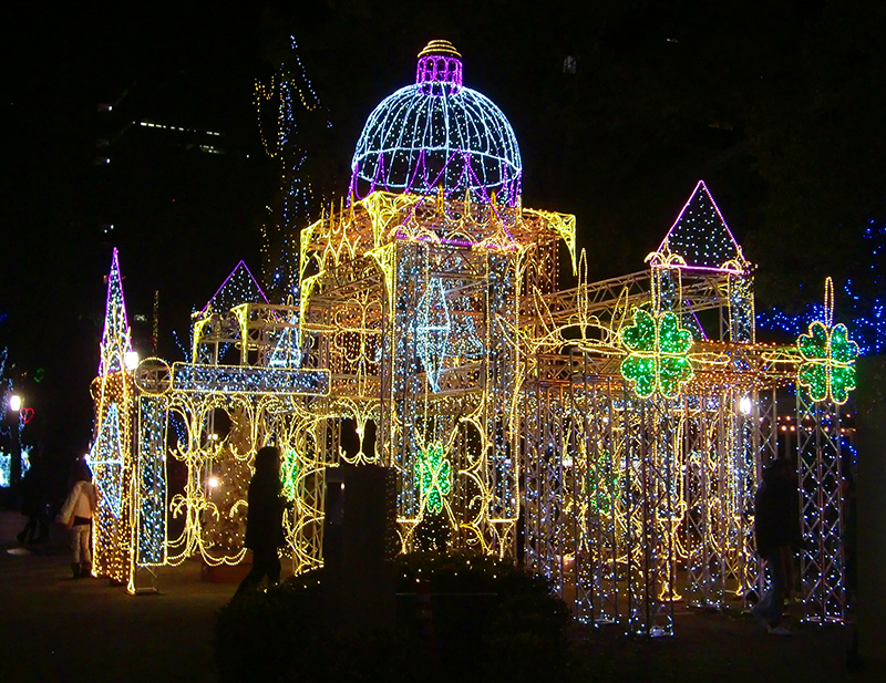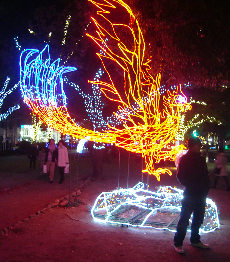 It was brutally cold though. Despite that we continued on to Hiroshima cities famed light show along the main downtown arcade. The city works on a very intricate light show which is actually solar powered! They gather the energy from the sun then use it to power the lights!