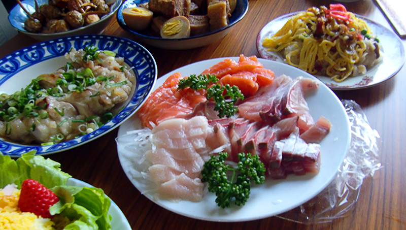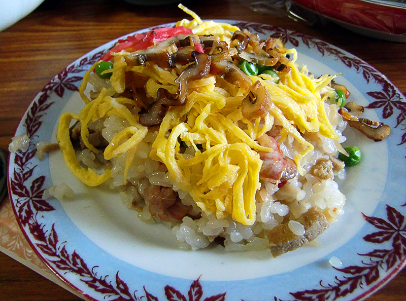 New years day included even more food. I’m a lucky man. This time we visited the entire family and had a huge meal. Here is a sampling of the food. First up is sushi which many people in north america might consider to be the rolled fish/rice/nori food it’s actually rice with vinigar. The sushi we are used to in North America is sushi maki (rolled sushi).
