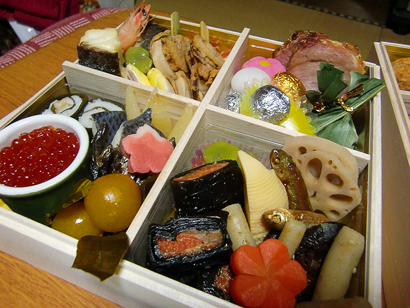 After that was done we moved on the to the osechi box which is traditional in Japanese culture. As it has been explained to me in the past thematriarchor the household would prepare food for one or two days non stop but the food that was prepared was food that was able to be preserved for days at a time. The concept was that the food would be prepared in advance so that the matriarch as well as the rest of the family would not have to work for days after. The family would go through each tray of food one by one with enough food to last for days if not weeks.