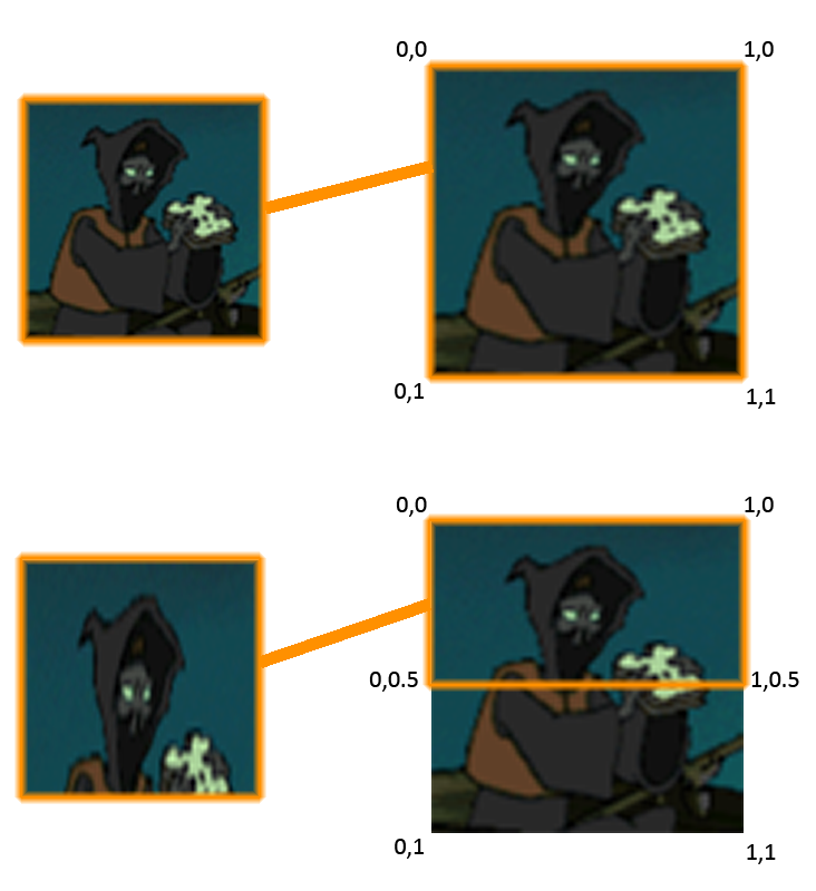 Now if you wanted to only show the half top of an image on a plane you would have the following coordinates:
