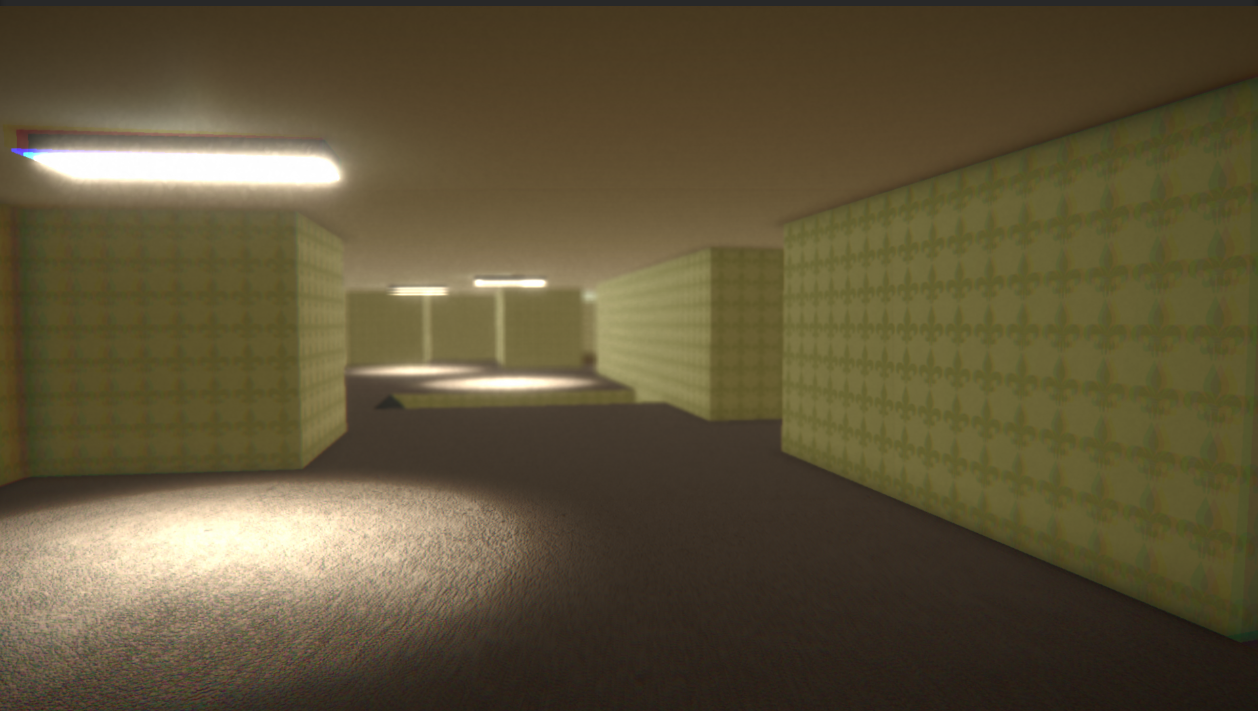 I was recently contributing to a small Unity engine game based off the Backrooms, a large fictional repeating world with a sort of mundane, brutalist architechture. Here's an example of what a Backrooms world might look like :