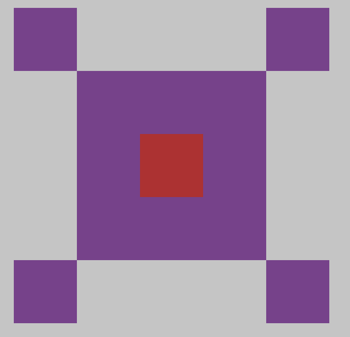 The kernel currently looks like this where the red cell is the raycast target cell and the purple ones are the kernel extra raycast targets.