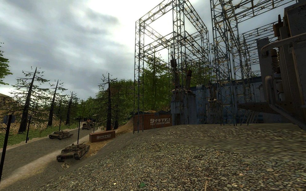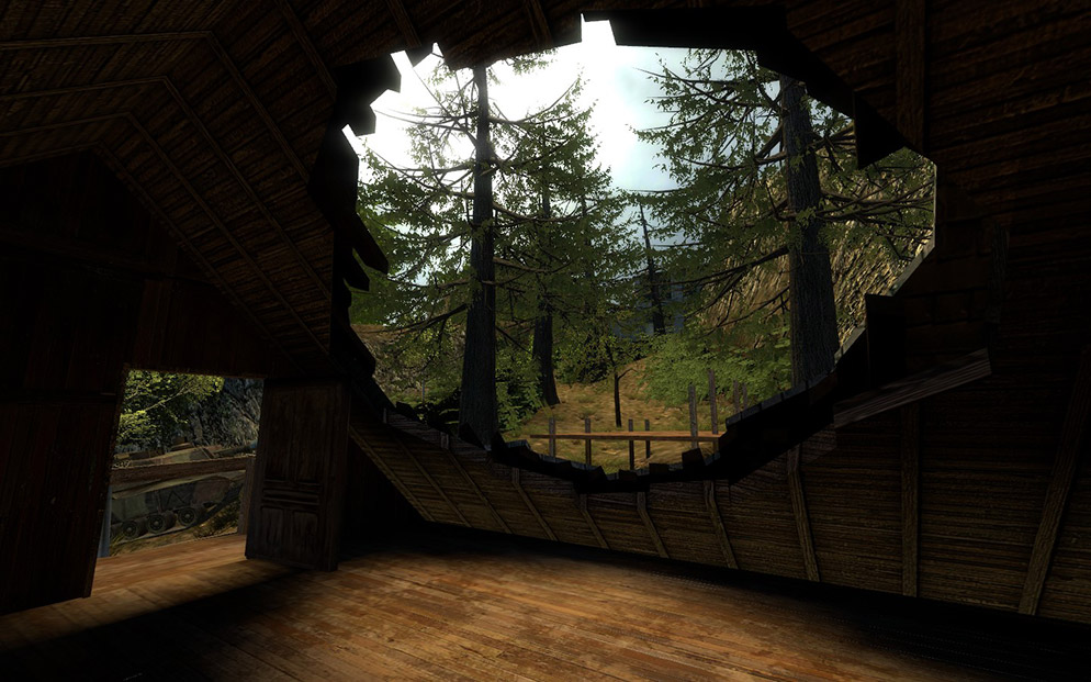 Caliber is an attempt at making a good outdoor map in the Source engine. Lots of optimization was required to get the map to run well on most types of hardware. Fog, aggressive LOD’s, BSP considerations and occlusion all played a part in keep the performance good on this map.